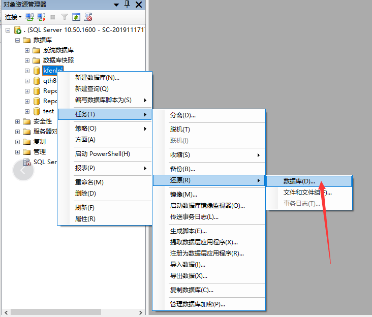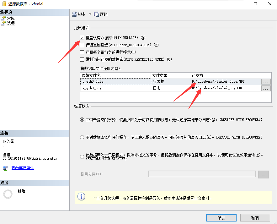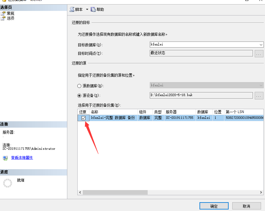 点击确认后,数据库就还原好了,如果失败看一下还原为这里的目录是否存在,如果不存在就建个目录,或更换一个存在的目录