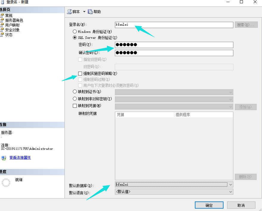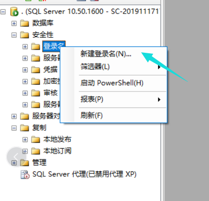 数据库还原好后,我们要为数据库重新创建一个登录账号和密码