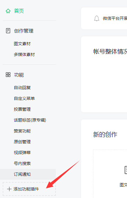 登录公众号,点击添加功能插件