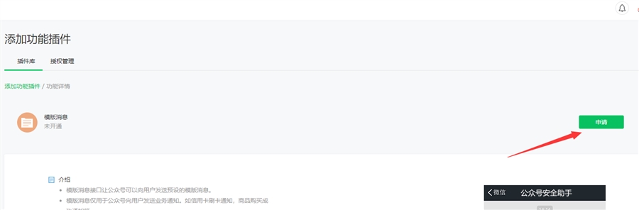 首先开通消息模板功能