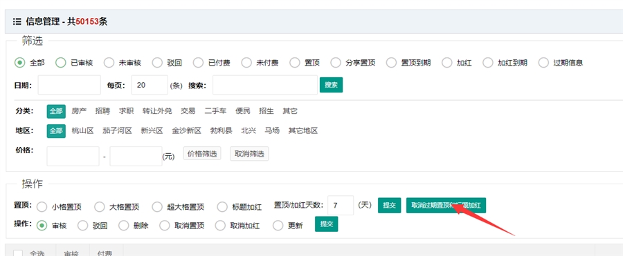 信息通过审核、信息被驳回、置顶到期、标题加红到期