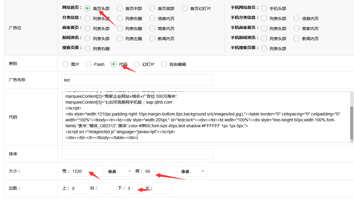 2、进入网站后台,网站设置 - 广告设置 ,添加广告,这里我们是放在首页头部广告位中