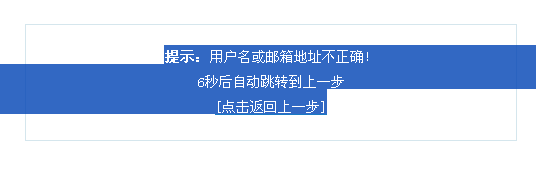【交流】提示:用户名或邮箱地址不正确! 5秒后自动跳转到上一步