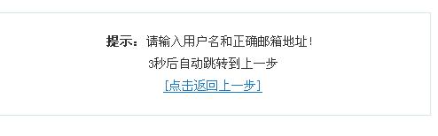 是啊,就是不能找回,提示 用户名或邮箱地址不正确! 5秒后自动跳转到上一步