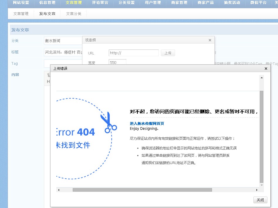 链接视频不能播放,本地上传后提示404错误,怎么破?视频格式是mp4
