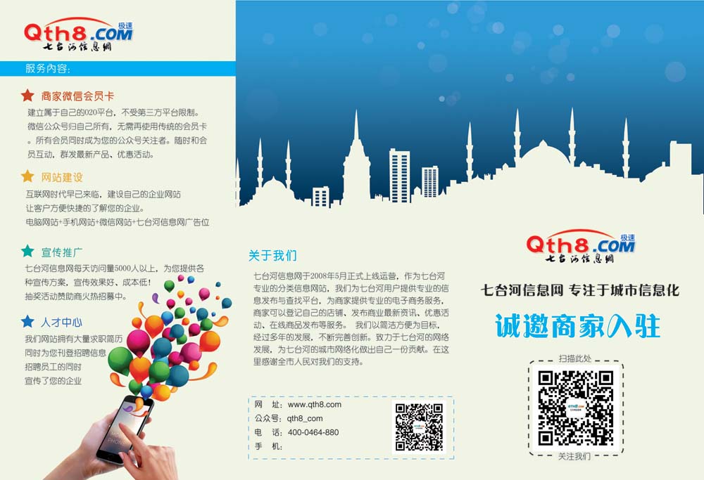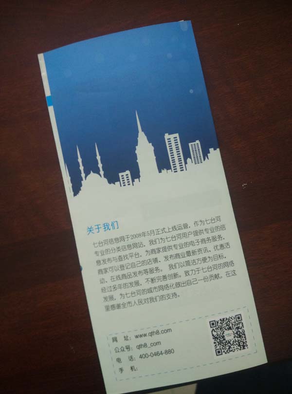 大家可以打印出来,直接发给当地商家。主要宣传商家建站、微信信息卡、广告位、招聘等功能。经官网测试,效果极佳。