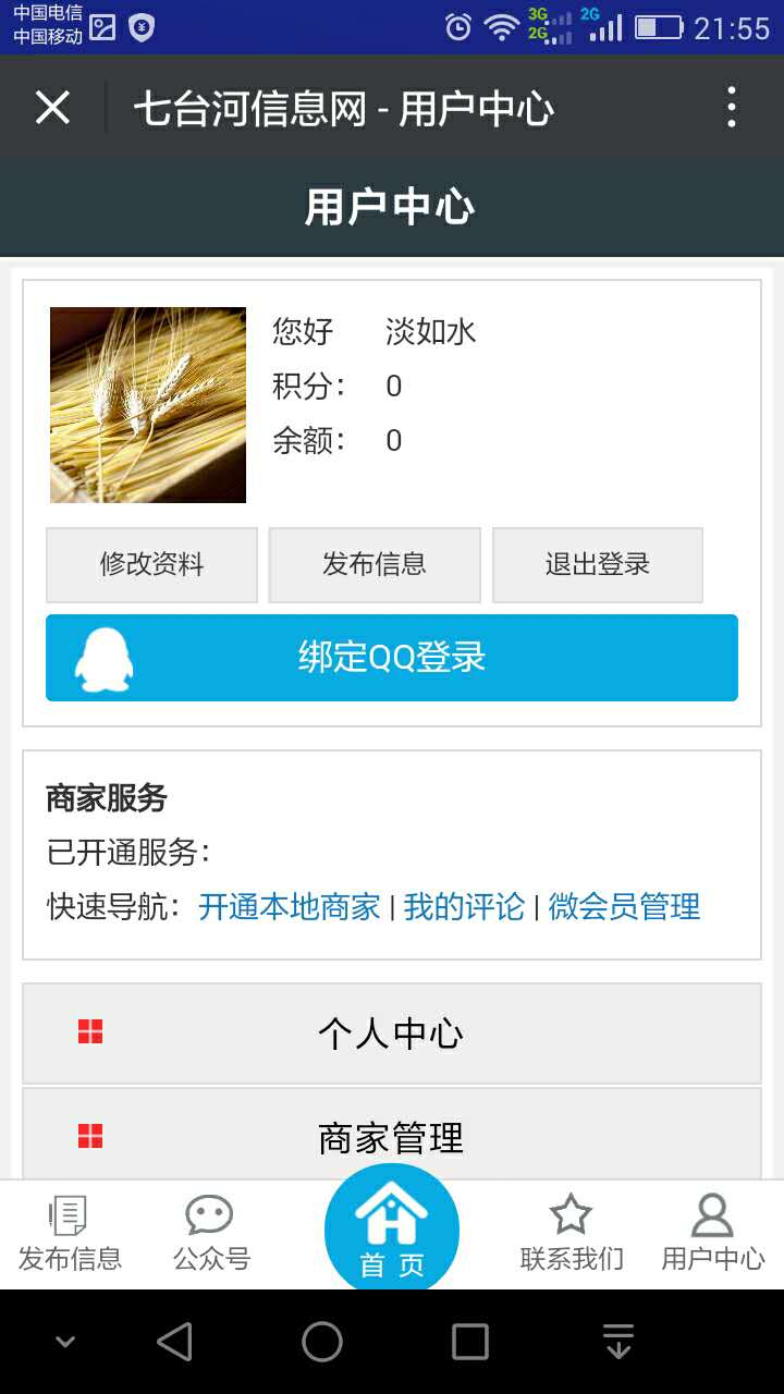 1、手机版微信登录调用不到微信头像(头像是后来我自己上传的)和昵称【总部的可以】,如下图: