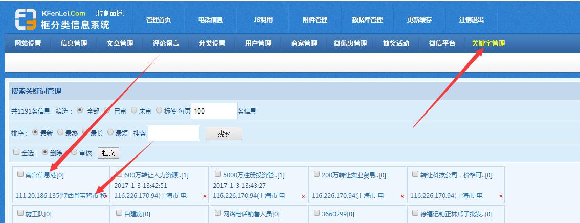 在关键词管理里边 你先在你的搜索框搜索南宫信息港 然后关键词管 希望官方对这个功能改进一下 比如说 招聘和厨师招聘 能设置个优先级 对替换次数的限制