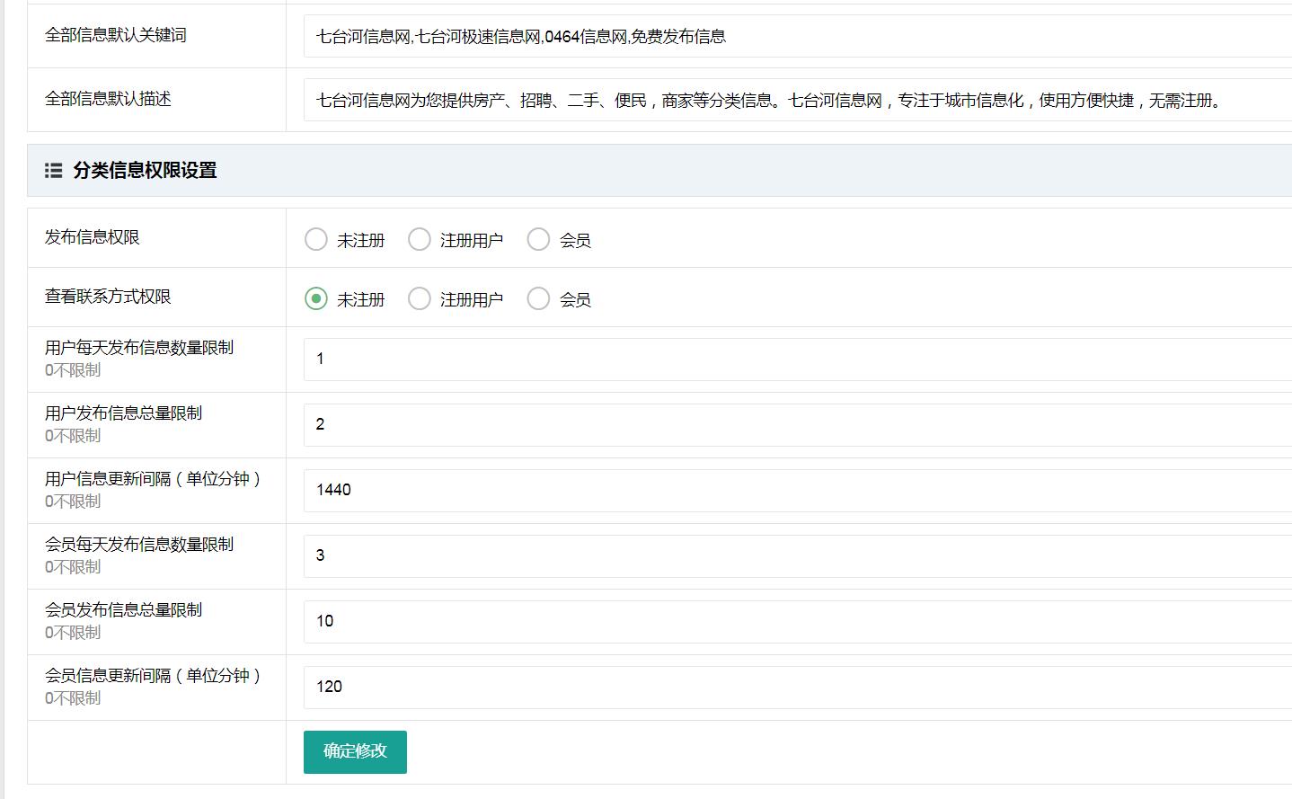 后台“分类信息设置”页面保存后报错!