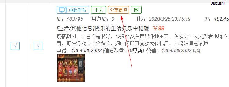 用户发布的信息后台查看是分享置顶,