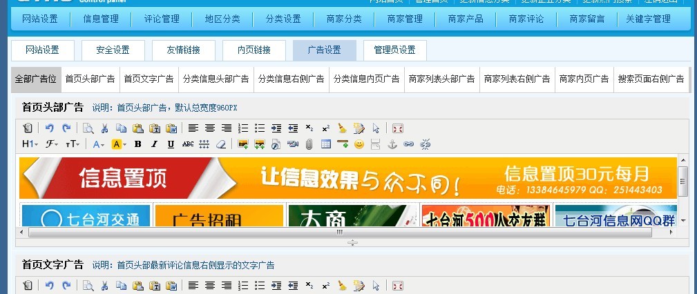 网站设置 - 广告设置
