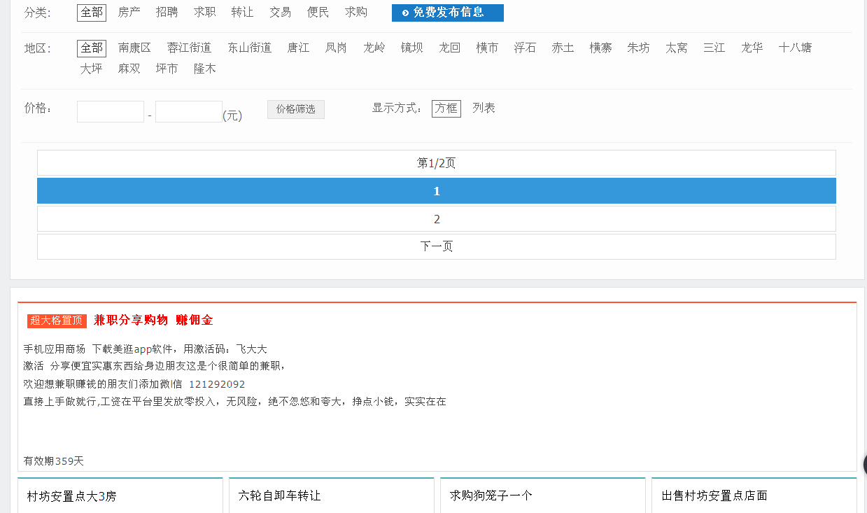 框分类:人性化的同城分类信息系统,我们永远站在用户的角度!一次性购买,终身升级!