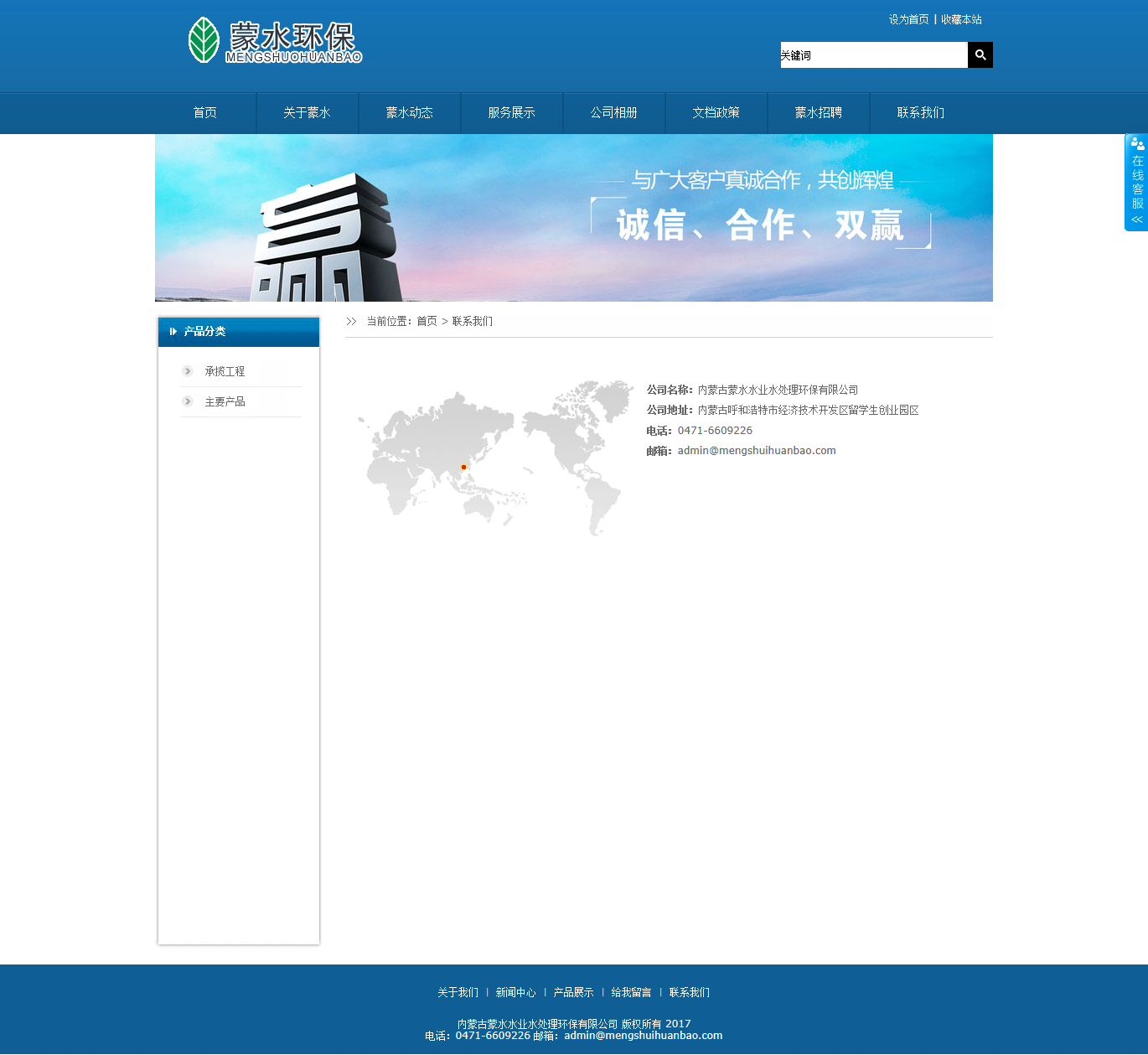基于官网“茶叶企业模板”修改成蓝色模版,补上了在线客服,多个蓝色选择,试发。