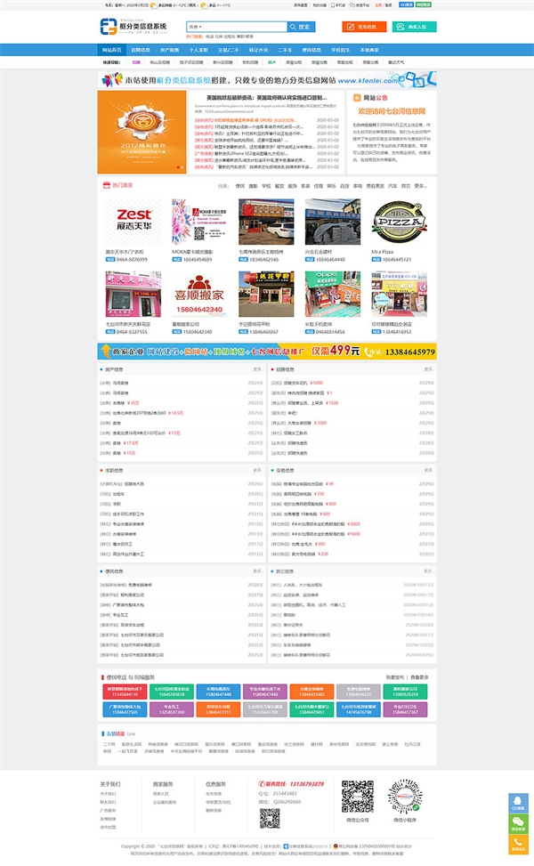 首页幻灯片、新闻、网站公告、热门商家、信息分类、信息列表模板、底部带便民电话