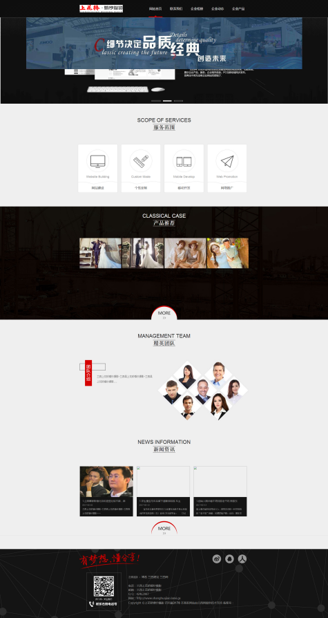 效果相当的炫酷,相当简洁大气高端,模板简单,全部已数据调用,只需后台添加修改栏目