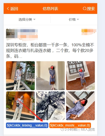 在全部分类列表中,如果某条信息的分类没有设置自定义字段,其它分类设置了自定义字段,则没有自定义字段的信息的字段标签会直接显示出来。