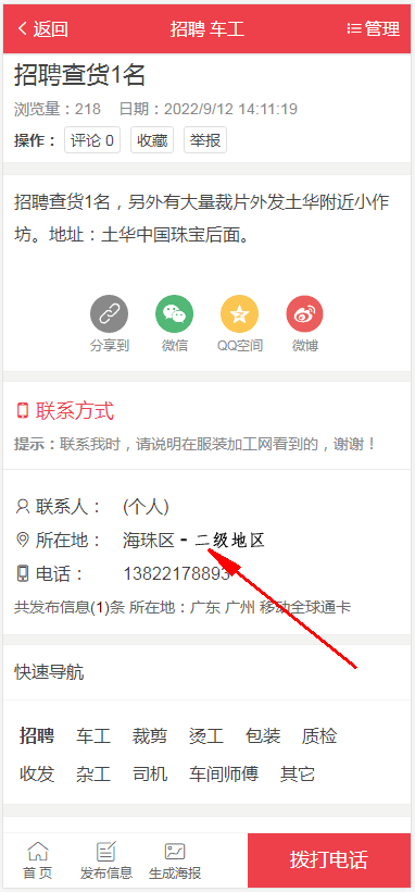 老大,我信息详情页的地区旁边加二级地区显示,应该如何修改代码