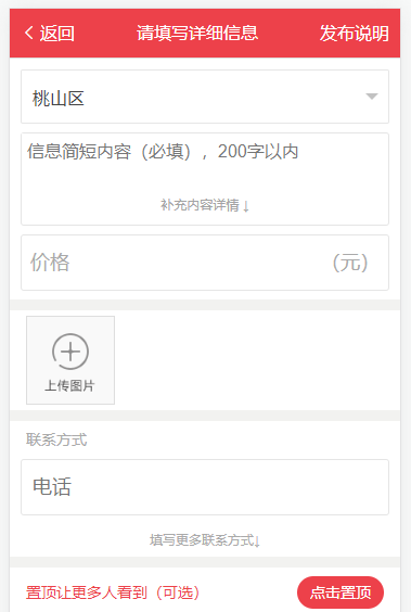 本着“简单、方便、实用”的理念,让用户快速发布信息,是时候取消信息标题填写了,直接填写信息内容,列表页显示内容前15个字就行,某8发布有的分类也不填写标题,又如闲鱼发布也不用填标题。或者后台做个开关,可以选择是否填写标题,这个功能简单但很重要,希望官方慎重考虑!